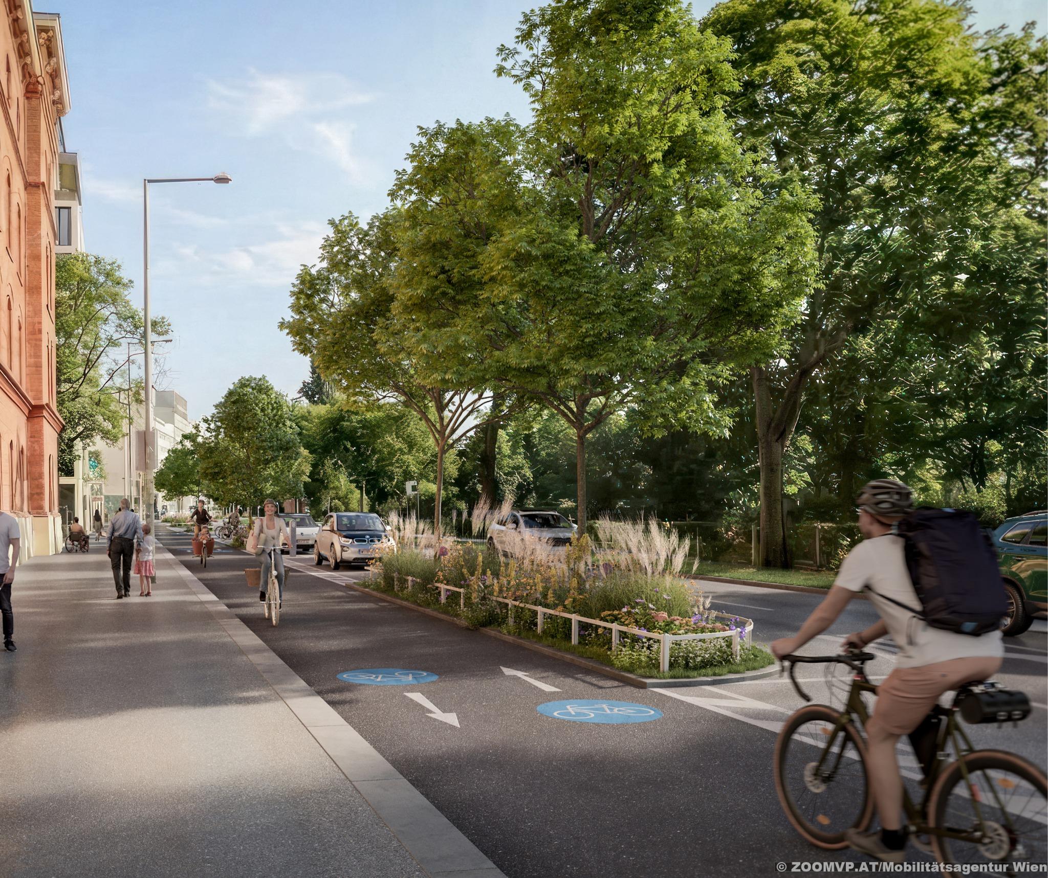 Der neue Radweg an der Oberen Donaustraße bindet die neuen Wohngebäude an und schließt eine Lücke am Donaukanalradweg. Angewandt wird hier eine neue innovative Baumethode, die kosteneffizient eine sicheren Radweg und neue Bäume ermöglicht.
